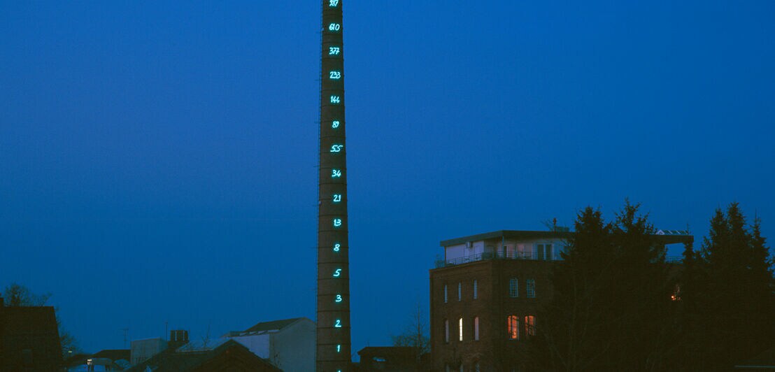 16 neonblaue Ziffern leuchten in der Dämmerung senkrecht auf einem 52 Meter hohen Industrieschornstein gen Himmel. Tagsüber kaum sichtbar, ziehen sie in der Dunkelheit schon von Weitem die Blicke auf sich. Aber auch die illuminierte Aufschrift „Mehr Licht“ über dem Eingang macht deutlich, worum sich hier alles dreht: In Unna steht das weltweit erste und einzige Museum für Lichtkunst, das mit wechselnden und dauerhaften Ausstellungen auch international für Aufmerksamkeit sorgt.
