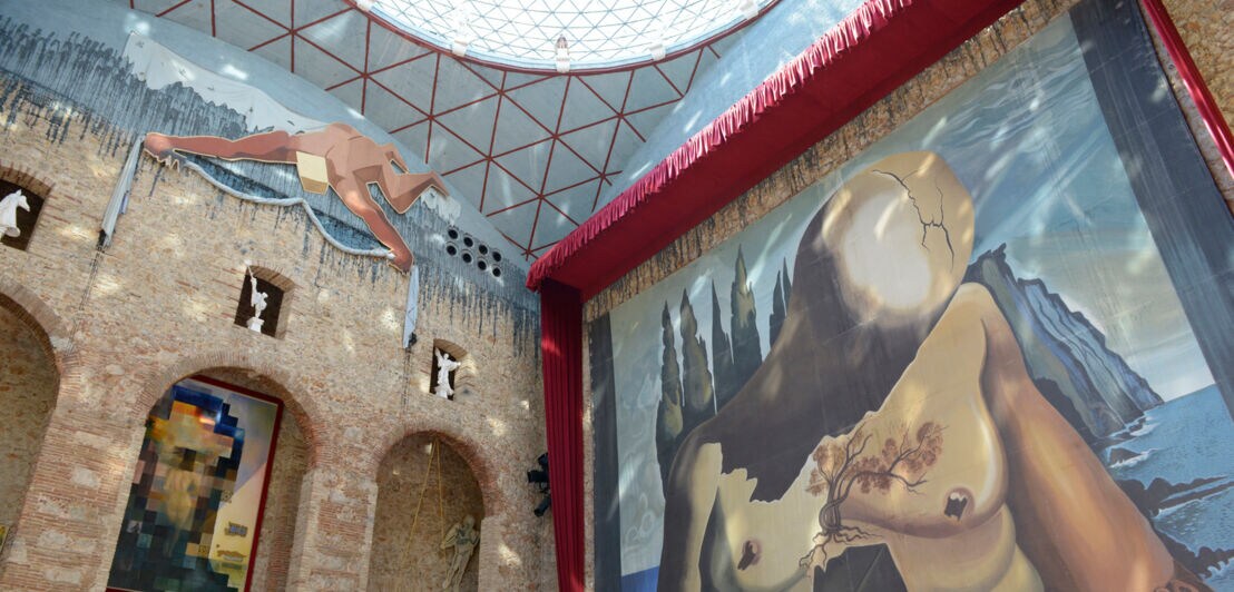 Ein Museum schon zu Lebzeiten? Das gibt’s nur bei den ganz Großen. Pablo Picasso gehört dazu. Und dessen Zeitgenosse Salvador Dalí (1904 bis 1989). Es war Dalí selbst, der das ehemalige Theater seiner katalanischen Heimatstadt Figueres in das Teatre-Museu Dalí umbauen ließ. Damit wollte Dalí für sich selbst und sein Werk eine Art Tempel schaffen. So ist das Museum auch Ausdruck der Extravaganz dieses besonderen Künstlers. Das erkennst du schon von außen: Das Museum ist mit überdimensionalen Eiern gekrönt – ein Markenzeichen Dalís, das er auch auf seinem Wohnhaus in Portlligat verwendete. Im Innern erwarten dich wichtige Werke aus seinem Frühwerk, der surrealistischen Phase und seiner klassischen Periode. Passend zu dieser Extravaganz auch der Spitzname, den sich der wohl berühmteste Zwirbelbartträger selbst gab und mit dem er seit den 1970er-Jahren angesprochen werden wollte: der Göttliche.