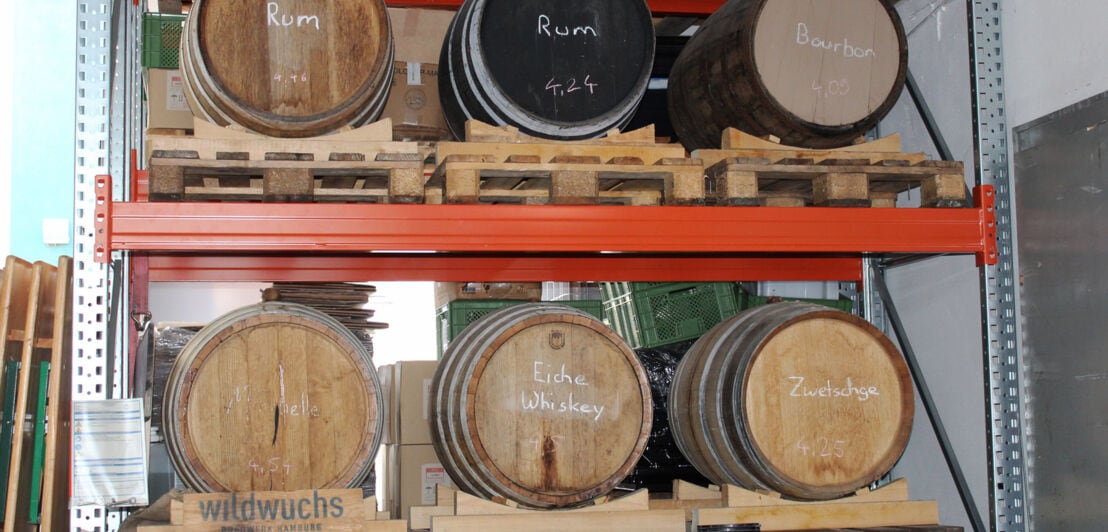 In den acht Fässern lagern bereits seit anderthalb Jahren Biere aus demselben Sud, die durch das Holz und die Vorbelegung mit den Spirituosen einen individuellen Geschmack bekommen. Diese Sorten werden sich später durch einen hohen Malz- und Alkoholgehalt auszeichnen. Von Zeitdruck und Massenproduktion keine Spur, das Bier lagert insgesamt stolze zwei Jahre im Fass. Das Wildwuchs Brauwerk ist mit den großen industriellen Brauereien nicht zu vergleichen.