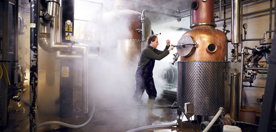 Die beiden Grundschritte der Gin-Herstellung – Alkohol destillieren, pflanzliche Aromen zugeben – finden sich also bei jedem Gin. Das gewisse Etwas ist dann bei den Feinheiten gefragt. Vielleicht hast du Lust, dein Wissen über die Gin-Herstellung in der Praxis zu vertiefen – etwa bei einer Destillerietour.