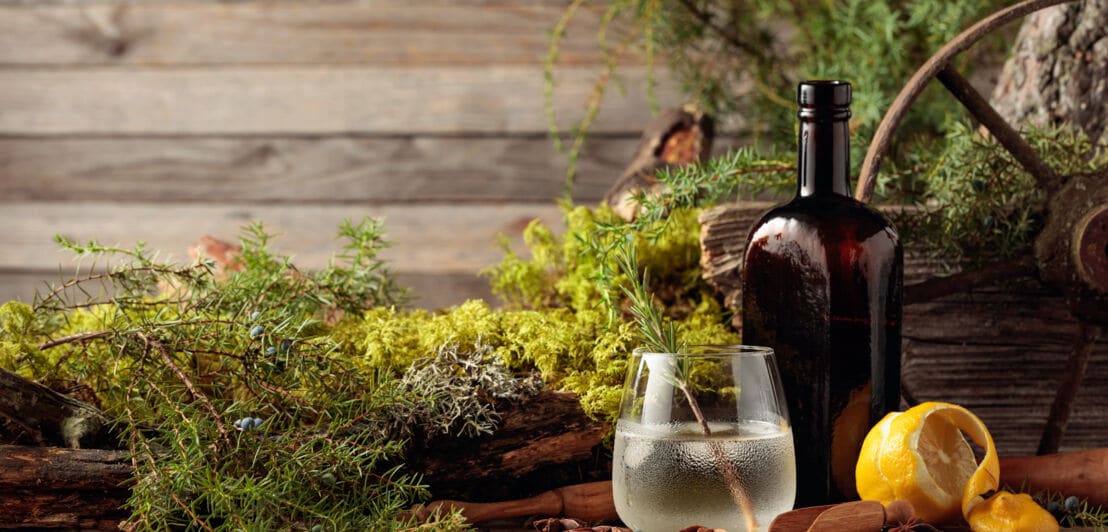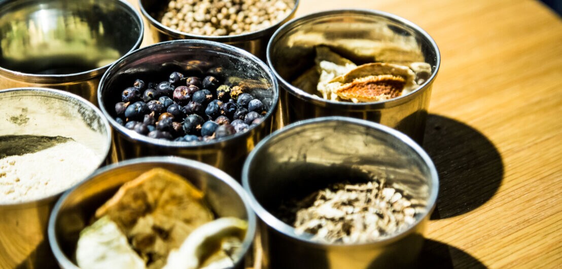 Für den charakteristischen Gin-Geschmack sorgen Botanicals, also pflanzliche Zusatzstoffe. Gesetzt sind beim Gin nur Wacholderbeeren, alle weiteren Zutaten wären optional.