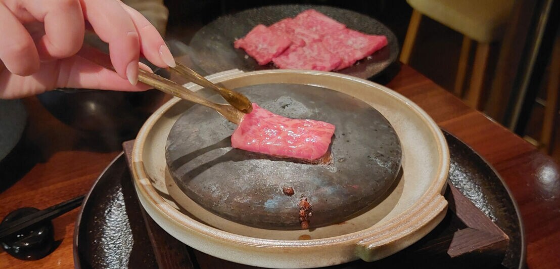 Möchtest du dir etwas Außergewöhnliches gönnen, probiere die dünn aufgeschnittenen Striploins vom Wagyu-Rind der höchsten Qualitätsstufe A5. Diese werden zunächst in eine Sesammarinade getaucht und anschließend auf einem heißen Stein eigenhändig nach Belieben gegart. Geschmacklich ist diese Spezialität mit herkömmlichem Rindfleisch nicht annähernd zu vergleichen.