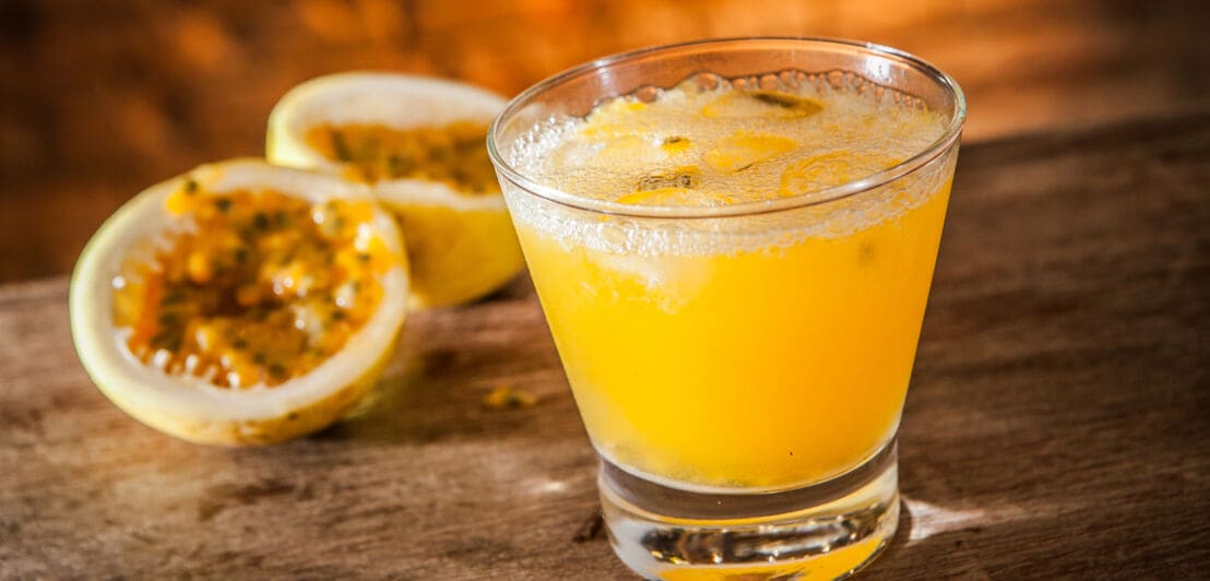 - 3 cl Orange-Passionsfrucht-Saft (oder jeweils die Hälfte der reinen Säfte)