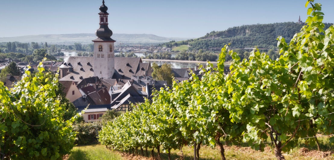 Wer am liebsten direkt im Weinberg Urlaub machen möchte, kann dies im Rüdesheimer Schloss tun. Das Vier-Sterne-Weinhotel gehört zum Weingut Georg Breuer und wartet mit fantastischen Ausblicken über die Weinberge und die malerische Altstadt auf.