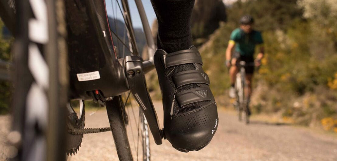Rennradschuhe haben meist Klett-, Ratschen- oder Klickverschlüsse und statt einer herkömmlichen Sohle in der Regel ein Verbindungsstück für die Klickpedale. Das erhöht deinen Fahrkomfort deutlich. Auch die passenden Socken sorgen für einen guten Tritt und ein angenehmes Fußklima im Schuh. Was du für deine Grundausrüstung zusätzlich brauchst: