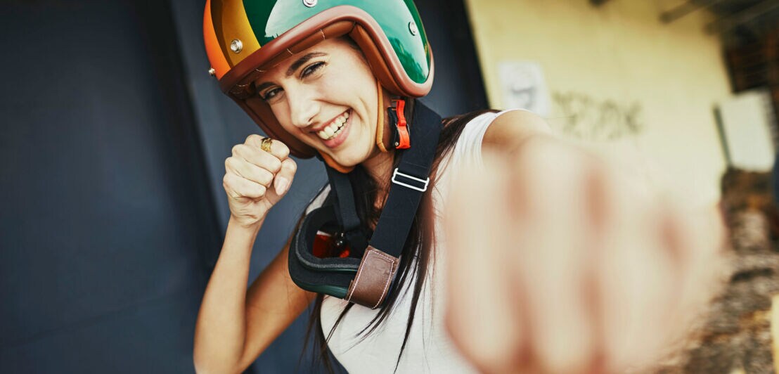 Filme, Kunst, Retro-Charme: Auf dem Markt der Motorradhelme gibt es eigentlich nichts, was es nicht gibt. Und wer doch nicht fündig wird, kann immer noch selbst ein Design entwerfen und es sich bei einer Spezialfirma auf den Helm lackieren lassen. Biker:innen senden mit der Wahl des Helms heute exakt die Botschaft, die sie senden möchten. Denn trotz individuellen Stils muss niemand auf die notwendige Sicherheit verzichten – die steht bei jedem Modell im Vordergrund.