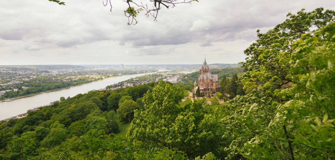 Von Köln fährst du in rund 30 Minuten nach Bonn, wo sich ein Stopp am Bonner Münster und in der Innenstadt lohnt. Danach geht es weiter nach Königswinter: Schloss Drachenburg und der Drachenfels sind Klassiker im Naturpark Siebengebirge. Besonders eindrucksvoll ist der Ausblick, den du bequem mit der historischen Drachenfelsbahn (Zahnradbahn) erreichst.