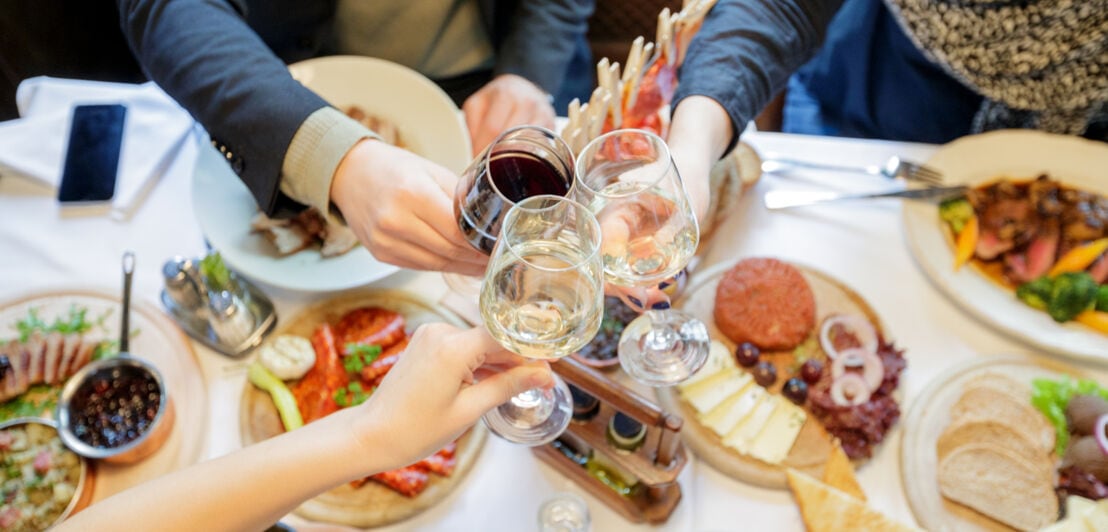 - Nur mit Alkohol anstoßen: Oft liest sich noch die Knigge-Regel, dass nicht mit alkoholfreiem Wein oder anderen Getränken ohne Alkohol angestoßen werden darf. Das ist nicht mehr zeitgemäß.