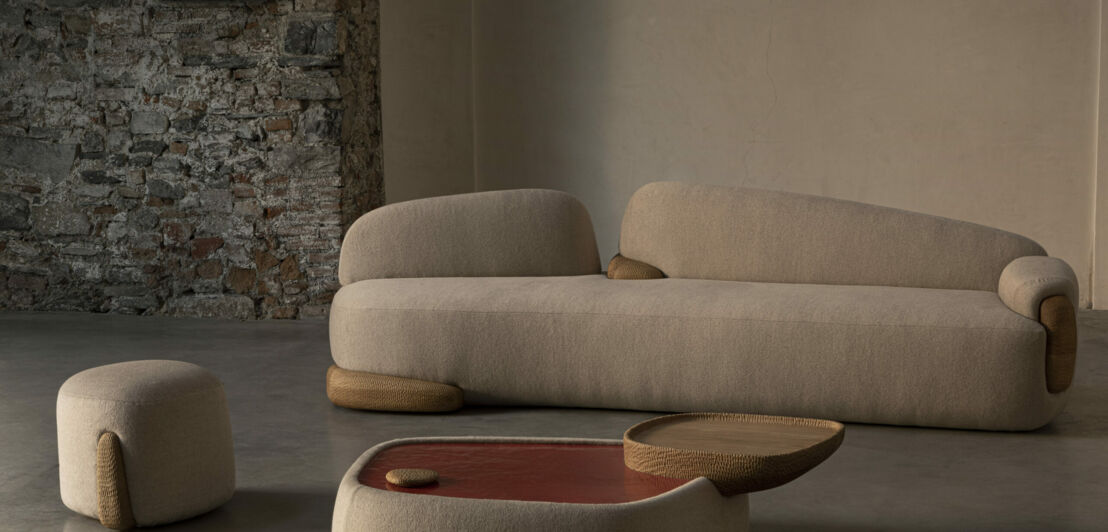 Die vom argentinischen Designer Cristián Mohaded für Loro Piana entworfenen Möbel erinnern an Steine. Sie sind ein perfektes Beispiel für die der Natur nachempfundenen Formen vieler Möbel und exquisiteste Polsterstoffe. Sofas und Sessel erweisen sich beim Anfassen als wunderbar weich und sind nur auf Bestellung erhältlich.