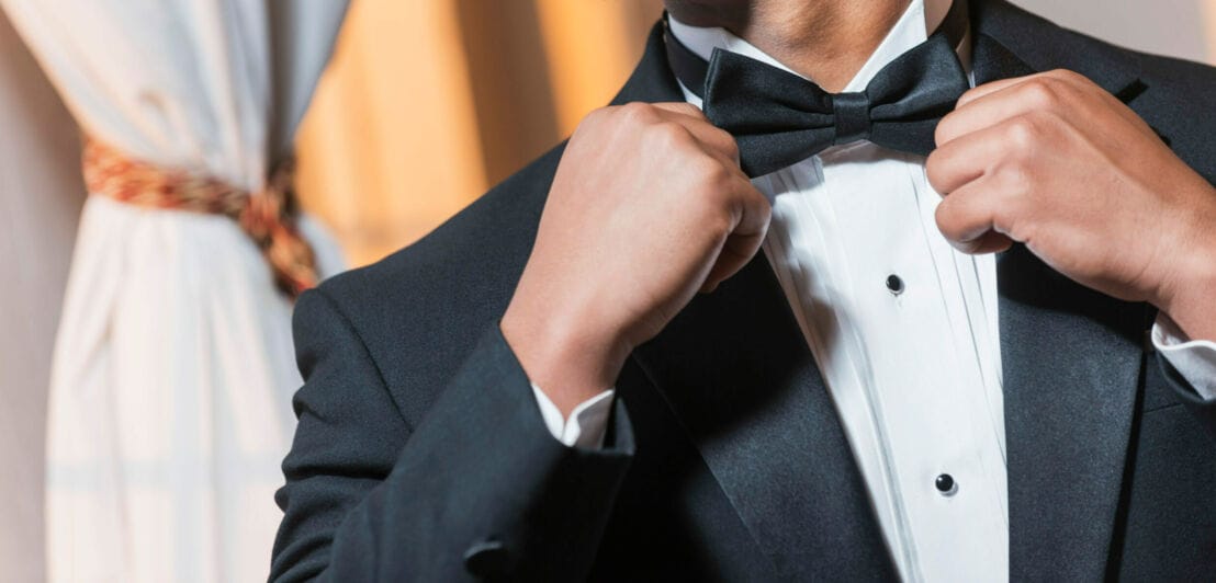 Bist du Gast auf Veranstaltungen, kommt es auf das richtige Styling an. Mit einem Smoking kannst du für einen eleganten Auftritt sorgen – allerdings solltest du ihn nur bei passendem Anlass tragen, um nicht overdressed zu erscheinen. Lies dir also genau die Einladung durch, ob darin bereits der Dresscode enthalten ist. Ansonsten gilt der Grundsatz: Für offizielle oder feierliche Veranstaltungen nach 18 Uhr ist ein Smoking angebracht. Im Zweifel scheue dich nicht, beim Veranstalter nachzufragen.