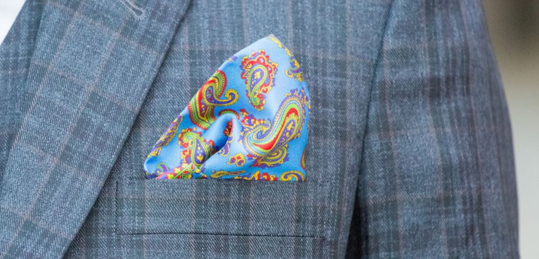Blau ist eine freundliche Farbe. Ist auf der Einladung kein Dresscode angegeben, ist ein blauer oder saphirblauer Anzug als Hochzeitsgast-Outfit fast immer eine gute Entscheidung. Schwarze Anzüge hingegen können an Trauerfeiern erinnern und sind daher je nach Ambiente nicht so geeignet.