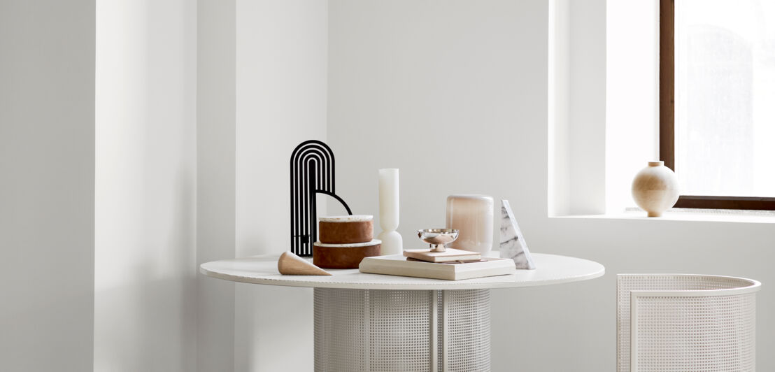 Wer ein stilvolles Zuhause hat, sollte sich auch den Schreibtisch entsprechend gestalten – vor allem, wenn ein Großteil der Arbeitszeit im Homeoffice verbracht wird. Das praktische Interieur darf dabei auch schön sein: Die Skulpturen der dänischen Designerin Kristina Dam sind einfach, aber dennoch elegant gehalten und spenden dem Auge Trost in stressigen Zeiten. Zum Set gehören eine dreieckige Buchstütze aus Tiger Skin Marmor, ein runder Briefbeschwerer aus Steingut, ein Holzkegel aus massiver Eiche und ein Messingbogen.