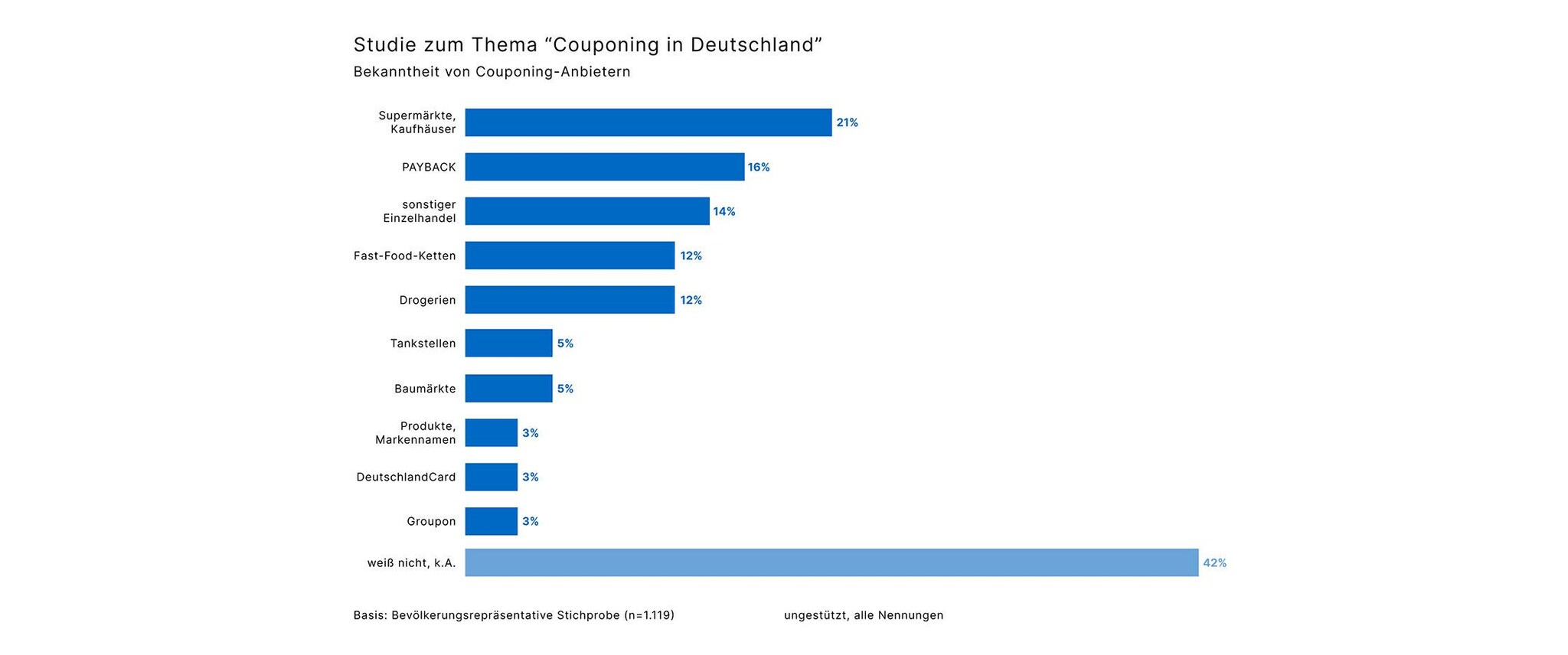 Im Jahr 2021 besaßen etwa 45,8 Millionen Deutsche eine PAYBACK-Karte. Auf Platz 2 der beliebtesten Bonuspunktekarten lag die DeutschlandCard mit circa 28,6 Millionen Nutzer:innen, die IKEA Family Card landete mit rund 19 Millionen Karten auf dem 3. Platz. Quelle: Statista