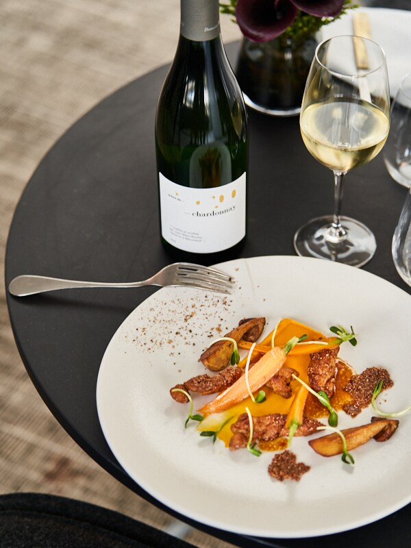 Sur la carte des vins, les Bras continuent de filer la métaphore du grain – celui du raisin. Sur une idée de Sergio Calderón, sommelier des Bras à Laguiole, plus de trente vignerons ont ainsi produit des cuvées spéciales pour La Halle aux Grains. Parmi les nombreuses bouteilles de cette sélection baptisée « Cuvées de grains », toutes en monocépage. Ainsi le « Grains de Sauvignon blanc » d’Anne Vatan, à Sancerre (millésime 2019) ou encore, en rouge, le « Grains de Cabernet Sauvignon », dont le raisin a été cueilli et vinifié au Château Latour, à Pauillac (millésime 2017).