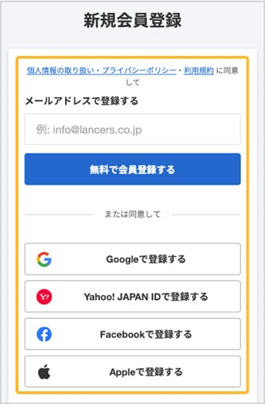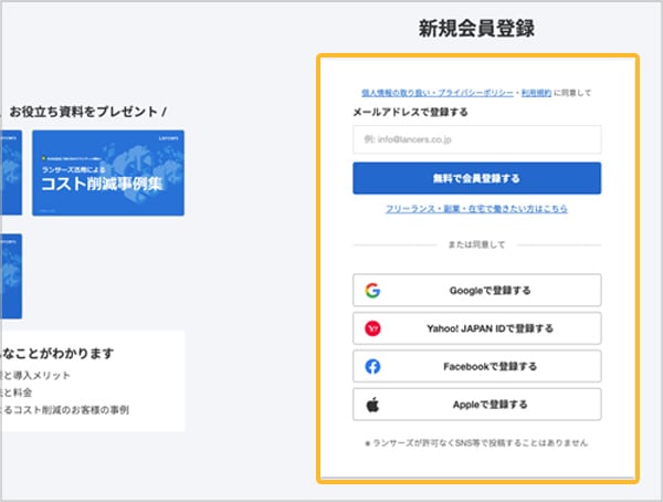 - 「Lancers」の新規会員登録