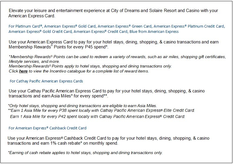 Payment Acceptance at City of Dreams Manila and Solaire Resort and Casino