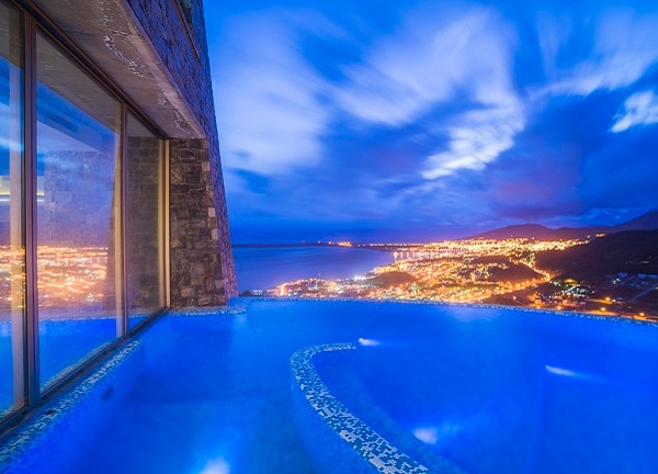 Luego, relajate disfrutando de nuestra piscina deportiva (indoor) y de relax (in-out) con privilegiadas vistas del Canal de Beagle y la ciudad de Ushuaia. Podrás también sumergirte en nuestros Hot Tubs exteriores (hidromasajes) y complementar la experiencia con sesiones de sauna seco y duchas terapéuticas.