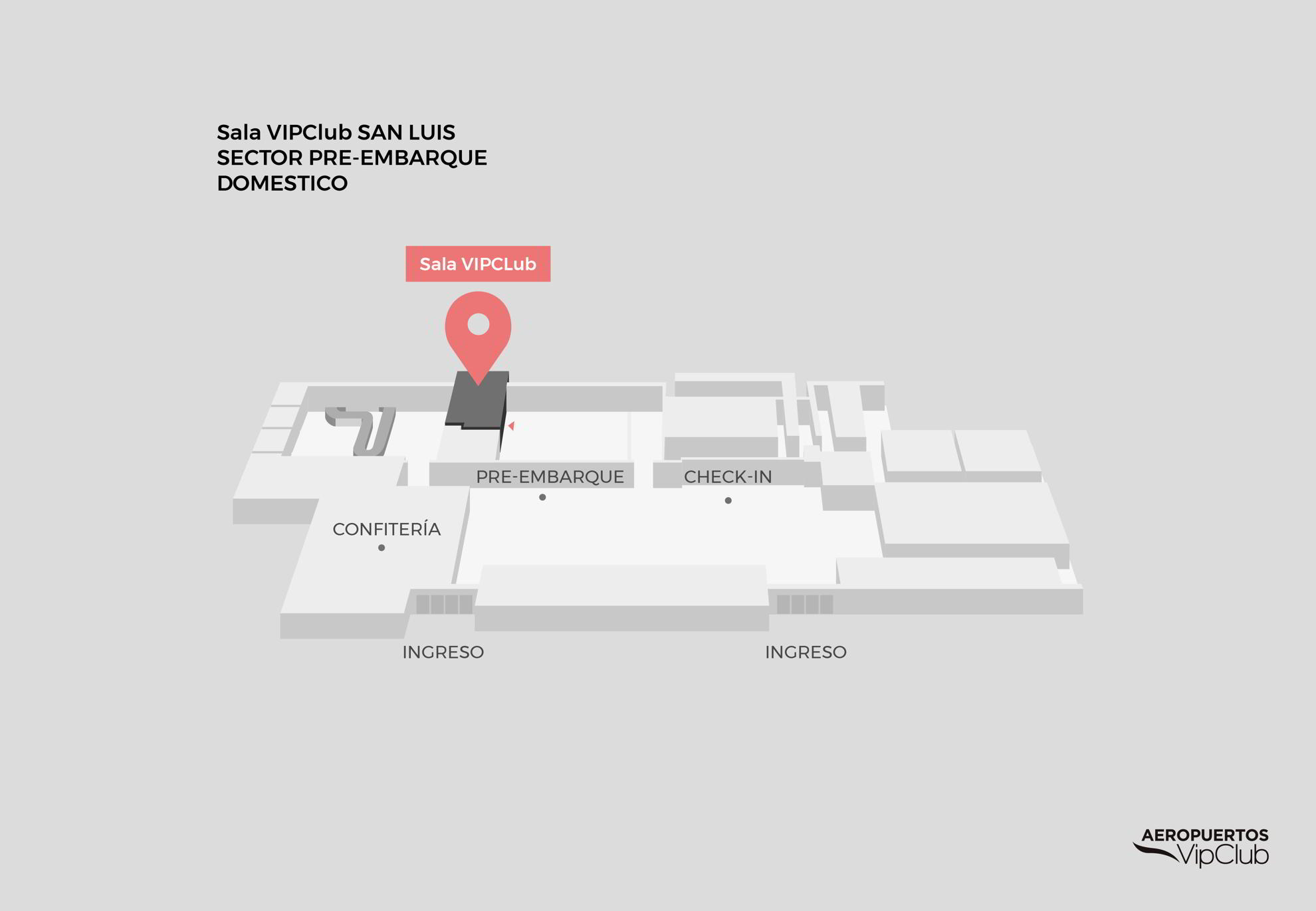 Ubicación: Zona de embarque de vuelos nacionales, luego de los Controles de Seguridad. La sala se encuentra a continuación de la puerta de embarque número 1.