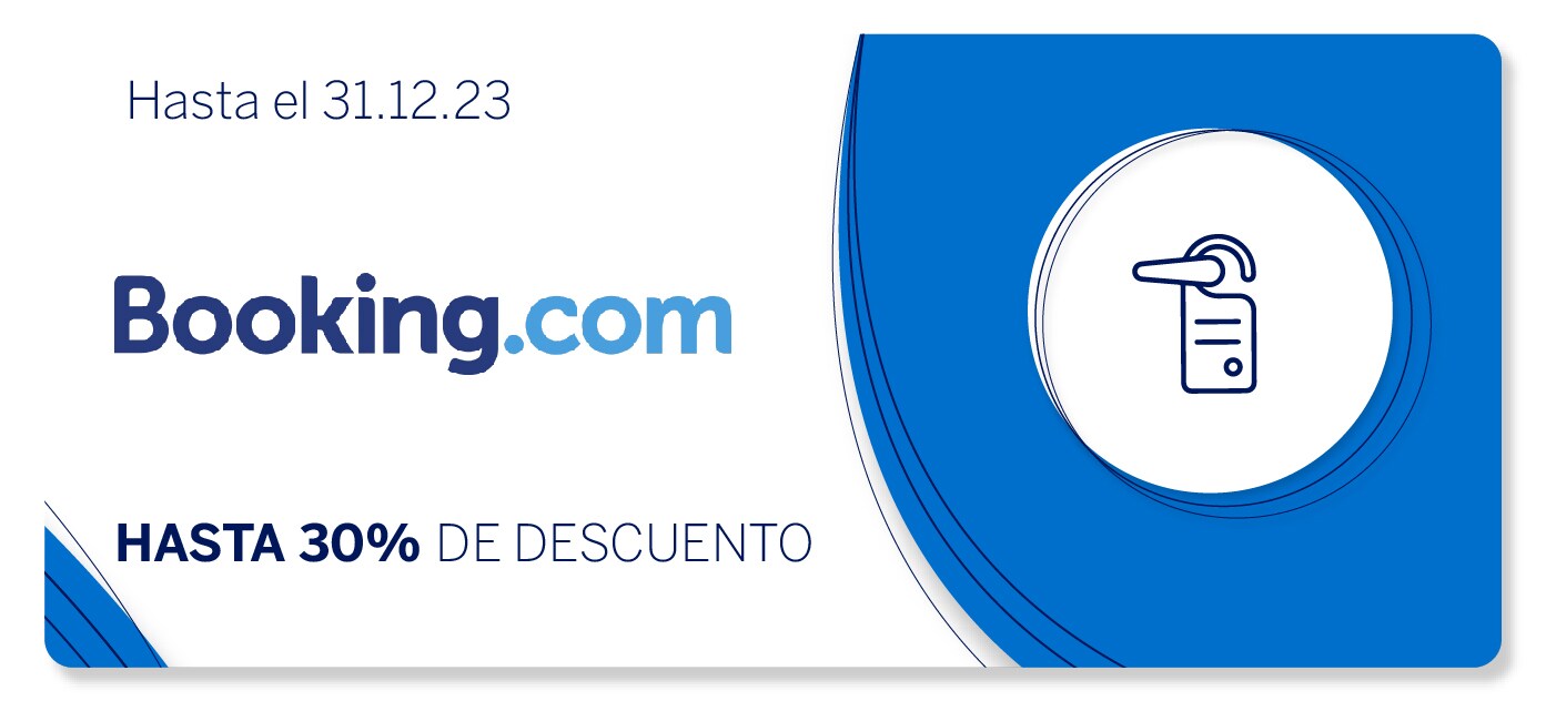 HASTA UN 30% DE DESCUENTO EN RESERVAS DE HOTELES SELECCIONADOS REALIZADAS EN BOOKING.COM A TRAVÉS DE LA PLATAFORMA DE BENEFICIOS AMERICAN EXPRESS A LA CUAL SE DEBE INGRESAR POR ESTE LINK WWW.EXPERIENCES.GLOBAL/TRAVEL/BOOKING CON LOS PRIMEROS 5 DÍGITOS DE SU TARJETA AMERICAN EXPRESS.LOS CLIENTES CON TARJETAS EMITIDAS POR AMERICAN EXPRESS O SUS SUBSIDIARIAS NO SON ELEGIBLES PARA ESTA OFERTA. PARA USAR ESTA OFERTA, DEBE RESERVAR EN UNO DE LOS HOTELES SELECCIONADOS EN BOOKING.COM UTILIZANDO LA PLATAFORMA DE BENEFICIOS AMERICAN EXPRESS Y PAGAR CON UNA TARJETA AMERICAN EXPRESS. LOS HOTELES QUE APLIQUEN A LA OFERTA TENDRÁN UN BORDE AMARILLO A SU ALREDEDOR EN EL SITIO WEB DE BOOKING.COM. EL DESCUENTO SE APLICARÁ ÚNICAMENTE A LA TARIFA BASE DE LA HABITACIÓN. LA OFERTA NO SE PUEDE COMBINAR CON OTRAS PROMOCIONES O DESCUENTOS Y NO APLICA A RESERVAS ANTERIORES. LA OFERTA ESTÁ SUJETA A CAMBIOS Y PUEDE SER DIFERENTE CADA NOCHE DE ESTADÍA. LA OFERTA ESTÁ SUJETA A DISPONIBILIDAD, SE PUEDEN APLICAR FECHAS RESTRINGIDAS Y SE PUEDE CAMBIAR O DESCONTINUAR EN CUALQUIER MOMENTO. LOS HOTELES PARTICIPANTES ESTÁN SUJETOS A CAMBIOS EN CUALQUIER MOMENTO SIN PREVIO AVISO. CUALQUIER INFORMACIÓN QUE PROPORCIONES A BOOKING.COM ESTARÁ SUJETA A LAS POLÍTICAS DE PRIVACIDAD Y LOS TÉRMINOS DE USO DE BOOKING.COM. EL CUMPLIMIENTO DE LA OFERTA ES RESPONSABILIDAD EXCLUSIVA DE ROCKET TRAVEL, INC. DE BOOKING HOLDINGS COMPANY. AMERICAN EXPRESS NO SE RESPONSABILIZA POR LOS PRODUCTOS Y/O SERVICIOS OFRECIDOS POR LOS HOTELES NI BOOKING.COM. AMERICAN EXPRESS ES UNA MARCA DE AMERICAN EXPRESS. LAS TARJETAS SON EMITIDAS POR BANCO MACRO S.A. BAJO LICENCIA DE AMERICAN EXPRESS.