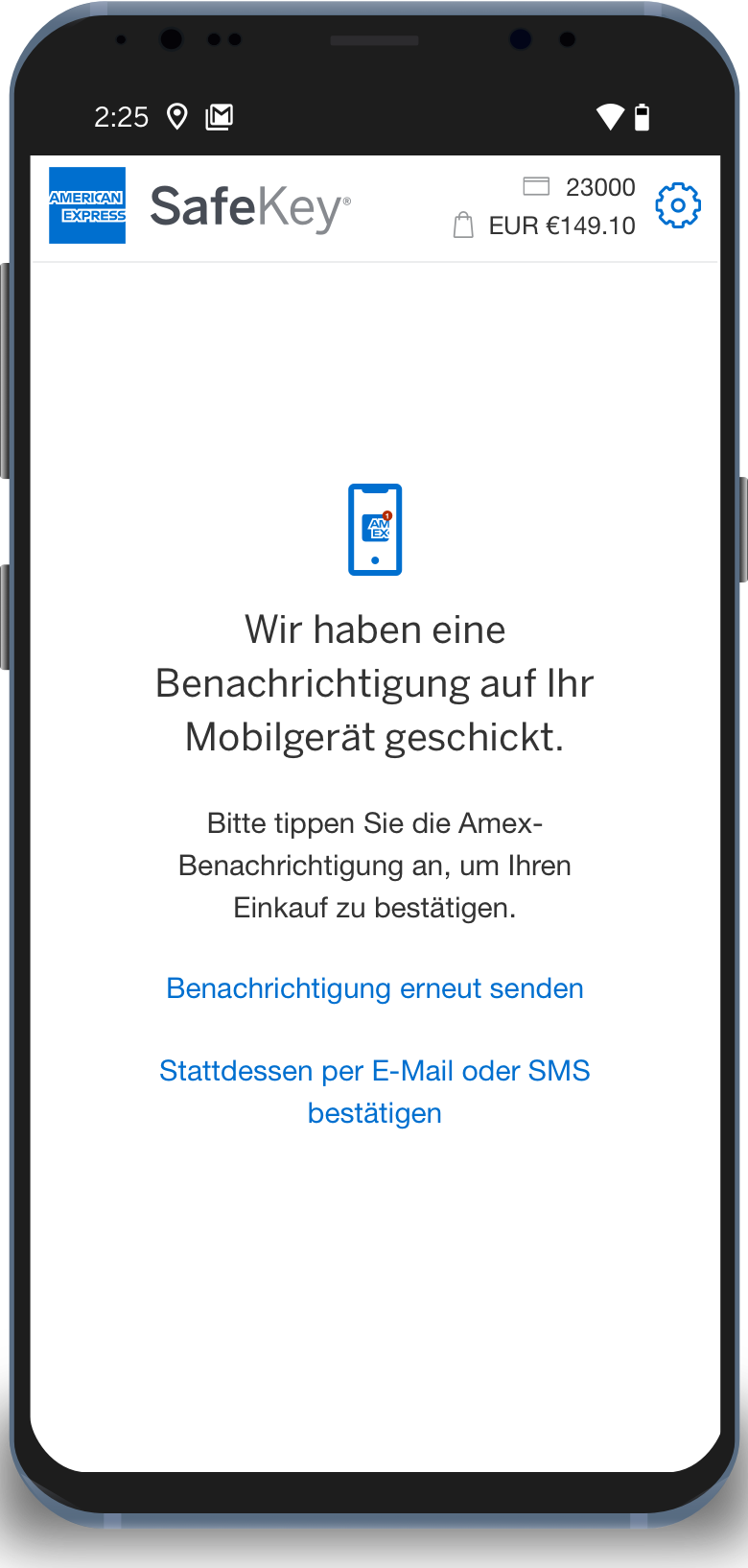 - Vor September 2019 wird der SafeKey Bildschirm möglicherweise nicht bei allen Händlern angezeigt. Daher können wir Ihnen für diese Händler keinen Bestätigungscode senden. Wir haben Ihre Präferenz für alle Händler gespeichert und diese wird angewendet, sobald der Händler SafeKey erhält.