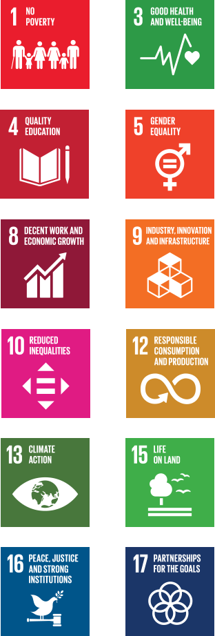 We have mapped the Sustainable Development Goals to our business initiatives and programs and believe our work is aligned with 12 Global Goals:
