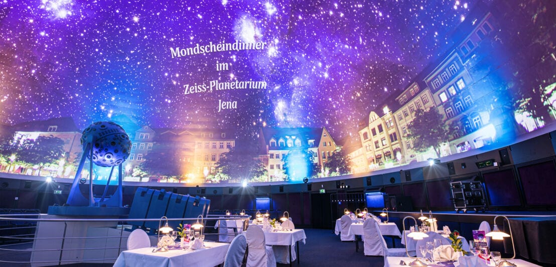Must-do: Ein Mondscheindinner mit Vier-Gänge-Menü unter den mehr als 9.000 funkelnden Sternen der Kuppel des Zeiss-Planetariums.