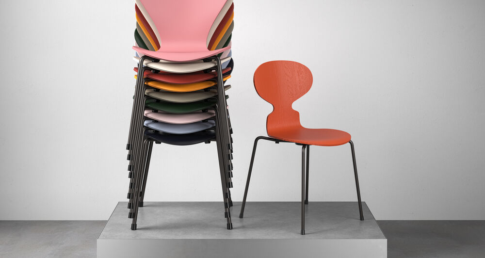 1951 entwarf der dänische Designer Arne Jacobsen die Ameise. Die Fertigungstechnik war damals äußerst modern, die Sitzflächen der Stühle und ihre taillierte Lehne wurden nämlich aus einem einzigen Stück Furnierholz gebogen. Typisch für die Ameise sind ihre drei Beine und die charakteristische Form. Ab 1955 produzierte der Hersteller Fritz Hansen ein Nachfolgemodell mit vier Beinen. Die Serie 7 ist ebenfalls bis heute weltweit ein Verkaufsschlager. Die dreibeinige Original-Ameise ist unter der Bezeichnung Ameise 3100 weiterhin erhältlich.