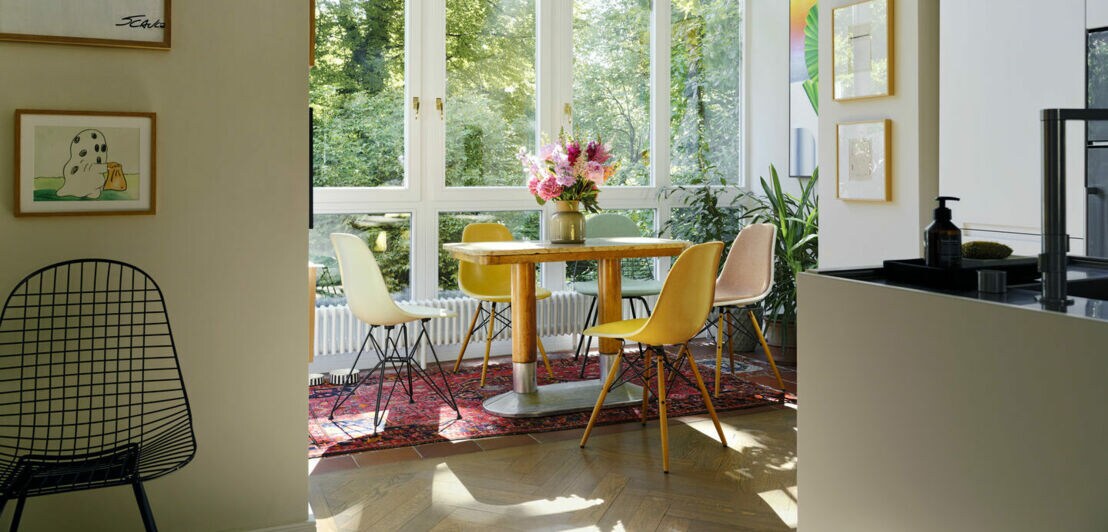 Es ist fraglich, wann der Hype um den allseits beliebten Eames Plastic Side Chair von Vitra wohl endet. Bisher ist es nicht absehbar. Der Entwurf aus dem Jahr 1948 ist der Klassiker unter den Designerstühlen schlechthin. Dieser erste Kunststoffstuhl, der in Serie hergestellt wurde, bildet mit den verschiedenen Sitzschalen und Untergestellen, die heute noch erhältlich sind, quasi eine Stuhlfamilie. Die am meisten gefragte Ausführung ist die Variante mit dem sogenannten Eiffelturmgestell. Die Drahtverstrebungen des Vierbein-Gestells geben ihr den Namen. Ganz offiziell heißt der Stuhl Dining-Side-Chair-Rode-Base (DSR).