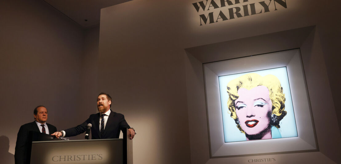 Präsentation eines Marilyn Monroe-Porträts von Andy Warhol im Auktionshaus Christie’s