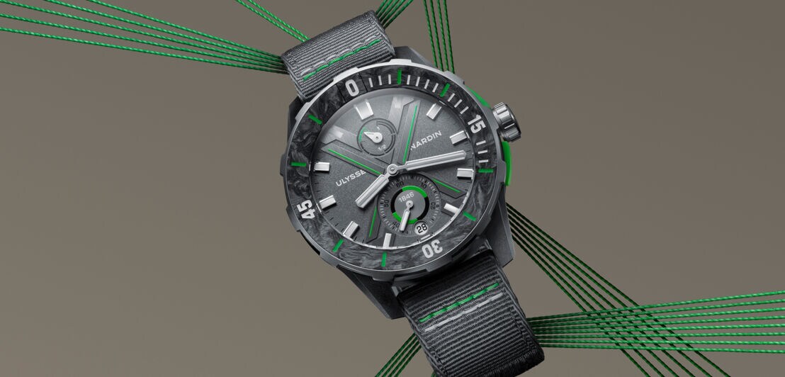 „Aus dem Ozean ans Handgelenk“ lautet das Konzept für das Nardin-Modell Diver X The Ocean Race, das in limitierter Auflage von 200 Exemplaren erschienen ist und circa 10.400 Euro kostet. Das Gehäuse der Luxusuhr besteht zu 40 Prozent aus Carbon und zu 60 Prozent aus recycelten Fischernetzen. Das Armband wurde aus Fischernetzen gefertigt, die das Start-up FIL&FAB aus der Bretagne aus dem Meer fischte und die dann von Ulysse Nardin gekonnt weiterverarbeitet wurden.