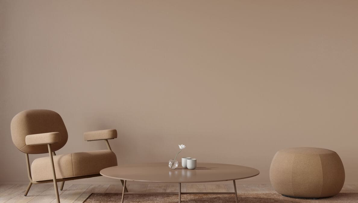 Wohnzimmer-Interieur in monochromer Terrakotta-Farbe