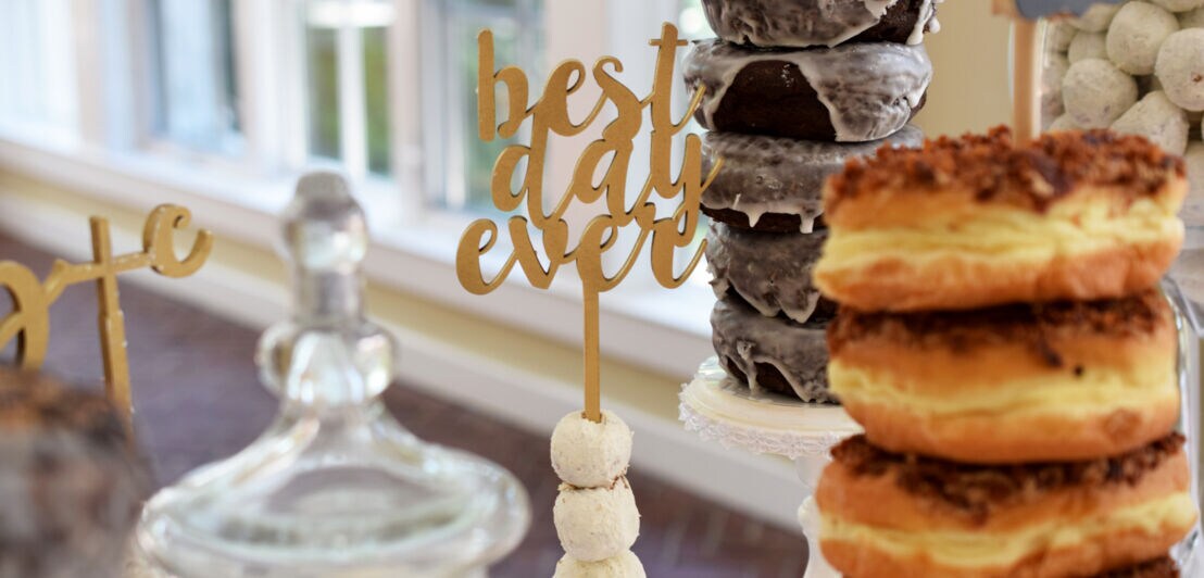 Als Alternative oder Ergänzung zu einem mobilen Süßigkeitenladen kannst du auf der Hochzeitsfeier die Anwesenden mit Donuts, Eis oder Waffeln verzaubern.