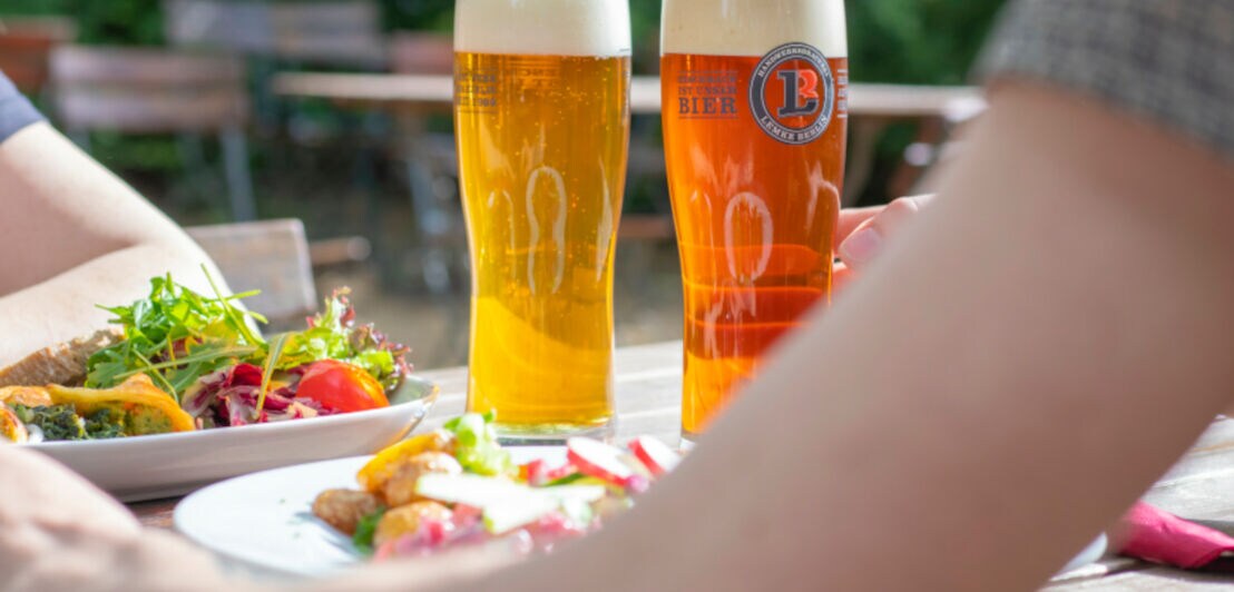 Draußen im Berggarten, einem standesgemäßen Biergarten, werden alle Eigenkreationen frisch abgezapft und serviert. Hier dürfen die Gäst:innen übrigens nach bayerischer Art ihr Essen selbst mitbringen. Im Sommer gibt es Konzerte, Comedyshows und DJ-Sets. Und auch für private Feiern steht der Berggarten zur Verfügung.