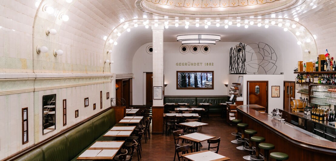 Wer Zeit hat, in Hamburg einen Tag zu vertrödeln, sollte das in der Brasserie Café Paris machen. Dieses Stück Frankreich in der Hamburger Innenstadt hat sein Zuhause in einer ehemaligen Schlachterei aus dem 19. Jahrhundert. In diesem Jugendstiljuwel mit gefliesten Wänden samt Kuppel wirst du, bequem auf einer der Bistrobänke, kulinarisch von morgens bis abends verwöhnt.
