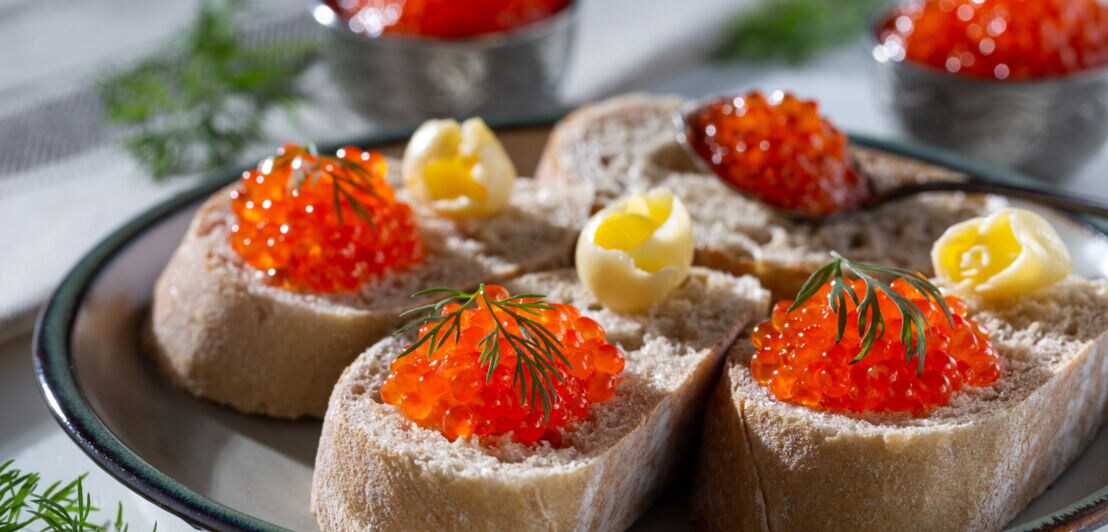 Nice to know: Hochwertiger Lachskaviar kostet pro Kilo zwischen 50 und 100 Euro – viel Genuss zum relativ kleinen Preis.