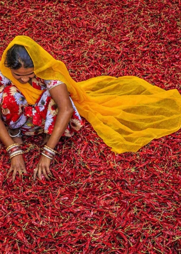 Neben den klassischen indischen Gewürzen, die in vielen Gerichten längst keine Nebenrolle mehr spielen, gibt es eine große Auswahl an frischen Zutaten, die viele Rezepte final abrunden. Zu Curry, Palak Paneer und Co passen häufig frischer Koriander, frische Chilischoten, Ingwer oder Limetten. Sie geben den Gerichten den letzten Schliff, runden sie geschmacklich ab und machen sie bunt. Indisch kochen bedeutet auch meistens, farbenfroh zu kochen. Denn: Das Auge isst mit!