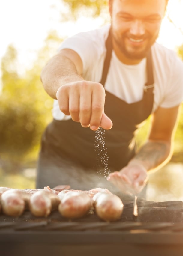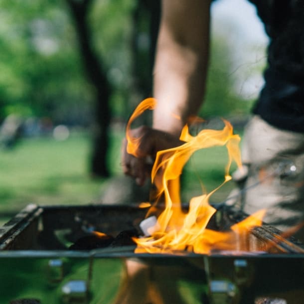 Gerade im Winter sollte schlechtem Wetter und Winter-Blues zum Trotz rund um den Grill alles stimmen – der Grillplatz genauso wie das Ambiente. Platziere den Grill windgeschützt, schnee- und eisfrei, vielleicht unter einem Pavillon oder hausnah, so können sich die Gäste schnell mal aufwärmen. Fackeln, Lampions, Feuerkörbe und Lagerfeuer sorgen für Ambiente und Wärme. Alternativ oder zusätzlich wärmen Heizstrahler und Decken. Geht dann die Sonne unter und es duftet verführerisch im Garten oder auf dem Balkon, ist das Grill-Abenteuer perfekt.