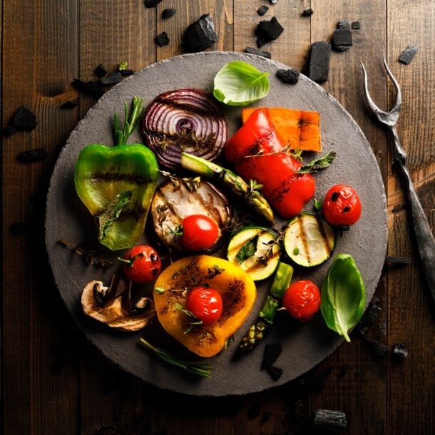 Traditionell sind Fleisch, Fisch und Grillkäse die Stars auf dem Rost. Beim Wintergrillen sind die saisonalen Beilagen besonders wichtig, zum Beispiel Rote Bete, Zwiebeln, Kürbis, Rosenkohl, Maiskolben, Fenchel, Pastinaken und Pilze. Sie sind das Soulfood, das dem Winter seine leckere Note gibt. Das Gemüse garst du am besten in Grillschalen. Lauch und Sellerie halten auch direkte Hitze aus. Wenn sie schwarz sind, einfach schälen und das leckere Aroma genießen. Ofenkartoffeln gehen natürlich immer. Verwende alternativ vielleicht mal Süßkartoffeln.