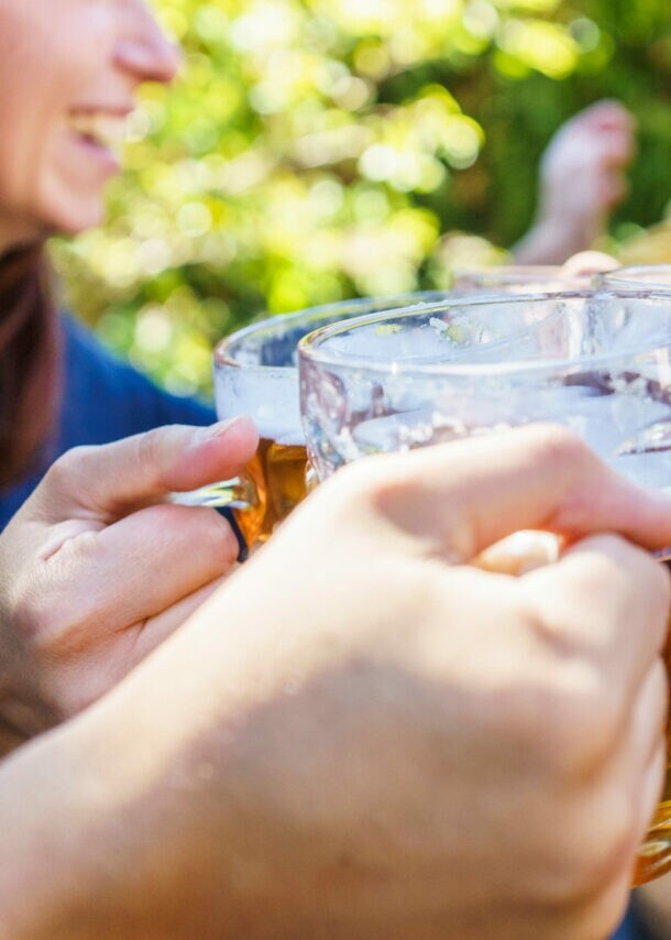 Beim Wintergrillen muss alles warm bis heiß gehalten werden, nicht nur Grillmeister:innen und Gäst:innen, auch das Grillgut, die Teller und Tassen. Geschirr kühlt extrem schnell aus, als Folge ebenso die Speisen und Getränke. Wärme es deshalb im Ofen bei 50 Grad Ober-/Unterhitze oder in der Mikrowelle an. In Thermoboxen oder auf einer indirekten Zone bleibt das noch nicht servierte Essen heiß. Der unbedingt nötige Deckel vom Grill sollte selten geöffnet werden. Auch Alufolie hält Essen warm, steht aber im Verruf, Schadstoffe abzugeben.