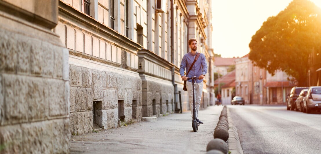 Eine Helmpflicht besteht für E-Scooter nicht – es ist aber, genau wie für Radfahrer, empfehlenswert, sich mit einem Helm zu schützen. Denn Unebenheiten auf der Fahrbahn wirken sich aufgrund mangelnder Dämpfung meist noch stärker aus als auf dem Bike.