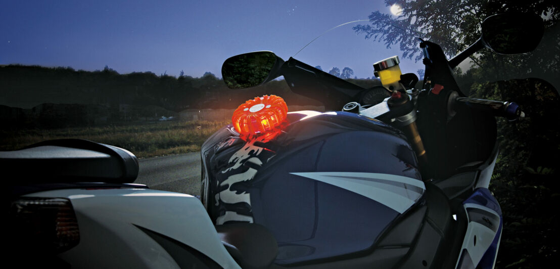 Auch wenn wir es nur ungern zugeben: Jedes Motorrad kann mal liegen bleiben. Während in Autos immer ein Warndreieck platziert ist, sind Motorradfahrende eher seltener mit solchen Schutzvorrichtungen ausgestattet. Das lässt sich dank moderner LED-Leuchten aber leicht ändern.