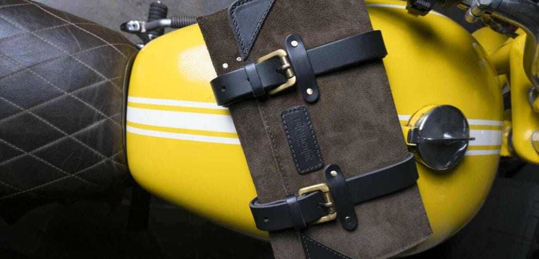 Nicht das innovativste Motorradzubehör, aber dafür definitiv cool und unentbehrlich: Mit der edlen Werkzeugtasche des indischen Labels Trip Machine hast du unterwegs immer die nützlichsten Tools dabei. Die Tasche bietet ausreichend Platz für Inbus-, Schraubenschlüssel, Zangen und weitere Werkzeuge, die für die Reparatur eines Motorrads nötig sind und hat außerdem ein zusätzliches, praktisches Zip-Fach.