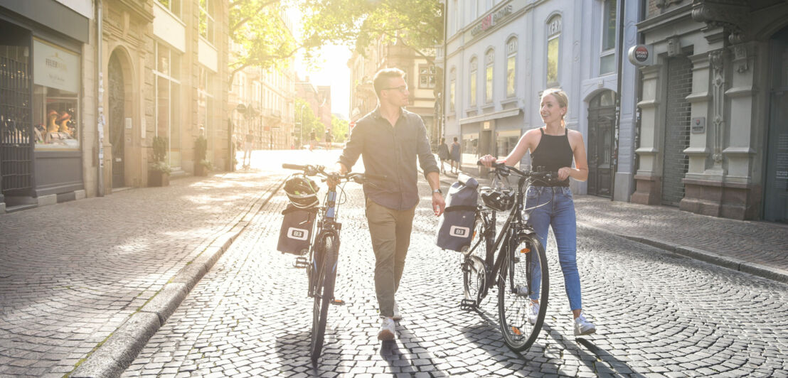 Schöne Modelle gibt es zum Beispiel von B&W: beide Hauptfunktionen sind erfüllt und du kannst mit der Fahrradtasche vernünftig einkaufen gehen. Die Taschen sind mit Teleskop-Griff und kleinen Rollen ausgestattet.