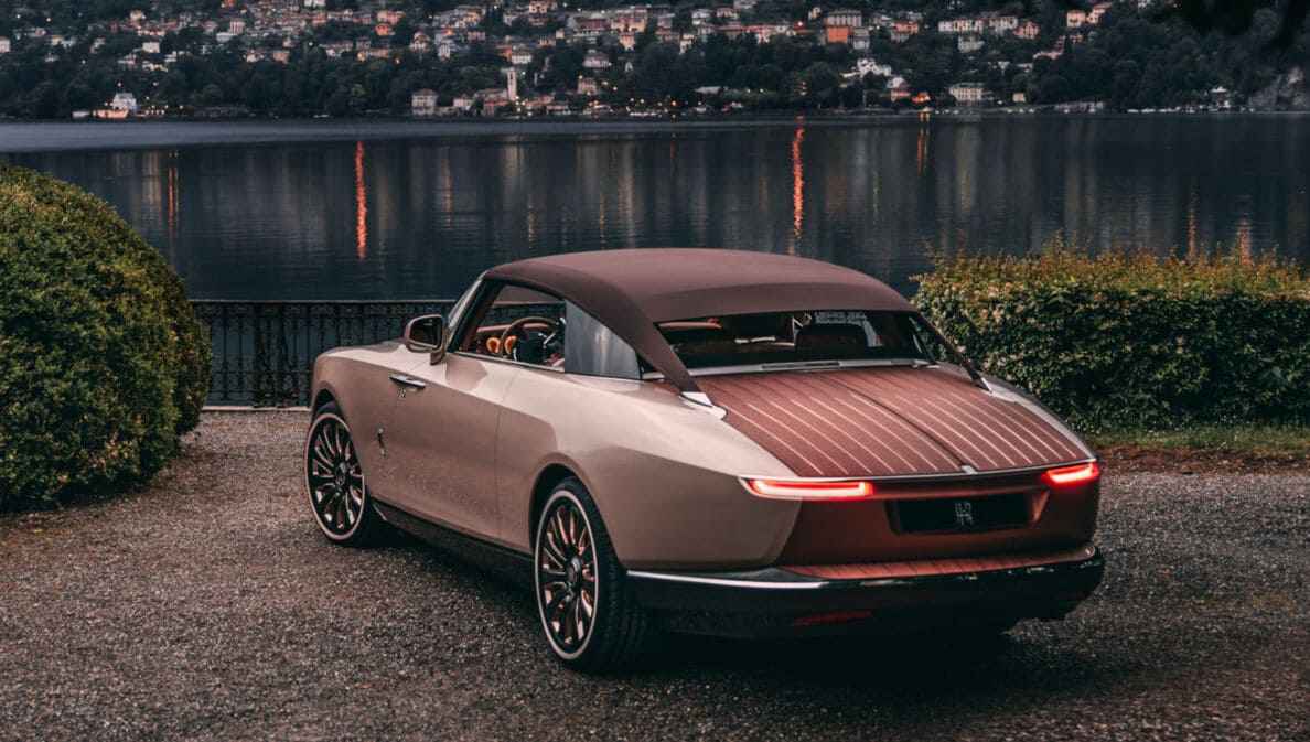 Mit nur drei gebauten Fahrzeugen kann beim Rolls-Royce Boat Tail nicht unbedingt von einem Serienauto die Rede sein. Stilistisch orientierte sich das Designteam an der Linie einer Segeljacht: Die Furnier-Heckklappe des 5,80 Meter langen Cabrios öffnet in Längsrichtung. Darunter verbergen sich ein Tisch, ein Hocker und ein Sonnenschirm – und natürlich ein Kühler für Champagner.