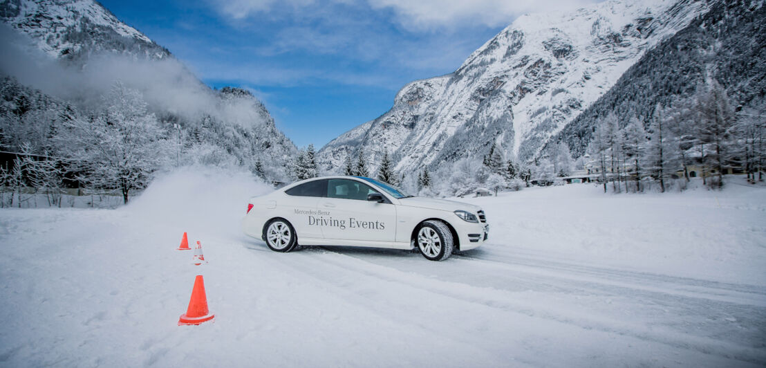 In Saalfelden im Salzburger Land hat der Österreichische Automobil-, Motorrad- und Touringclub (ÖAMTC) eine ganze Test- und Fahrwelt für Autofahrer:innen und Motorradbegeisterte geschaffen. Auch Fahrzeug- und Reifenhersteller nutzen diese Infrastruktur für ihre Tests. Von Dezember bis März kannst du in den drei Eisarenen des Zentrums das ÖAMTC-Winterfahrtraining absolvieren. Das eintägige Training „Snow & Fun“ kostet rund 340 Euro. Zwei Tage „Snow & Fun Pro“ kannst du für rund 550 Euro buchen. Gefahren wird im eigenen wintertauglichen PKW, der eine Straßenzulassung hat und aktuelle Abgasnormen erfüllen muss.