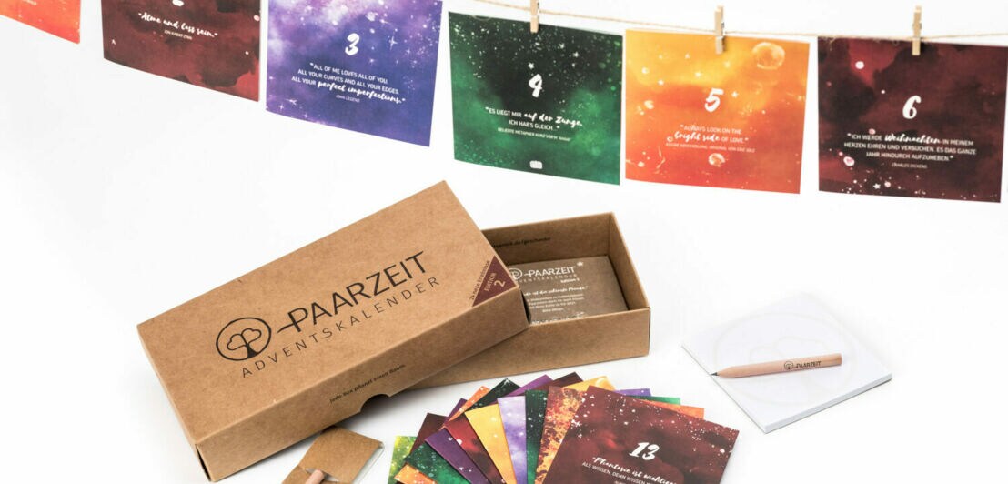 Der Paarzeit Adventskalender bietet Paaren eine tägliche Auszeit im lebhaften Vorweihnachtsalltag. Er besteht aus 24 sogenannten Paarzeit-Karten, von denen jede einzelne euch auf eine Reise mitnimmt und euch Momente der Entspannung, der Achtsamkeit und der Nähe bescheren soll. Die Idee der Macher:innen ist es, Paaren gerade in der häufig lebhaften Adventszeit Momente der Zweisamkeit und Reflexion zu ermöglichen.