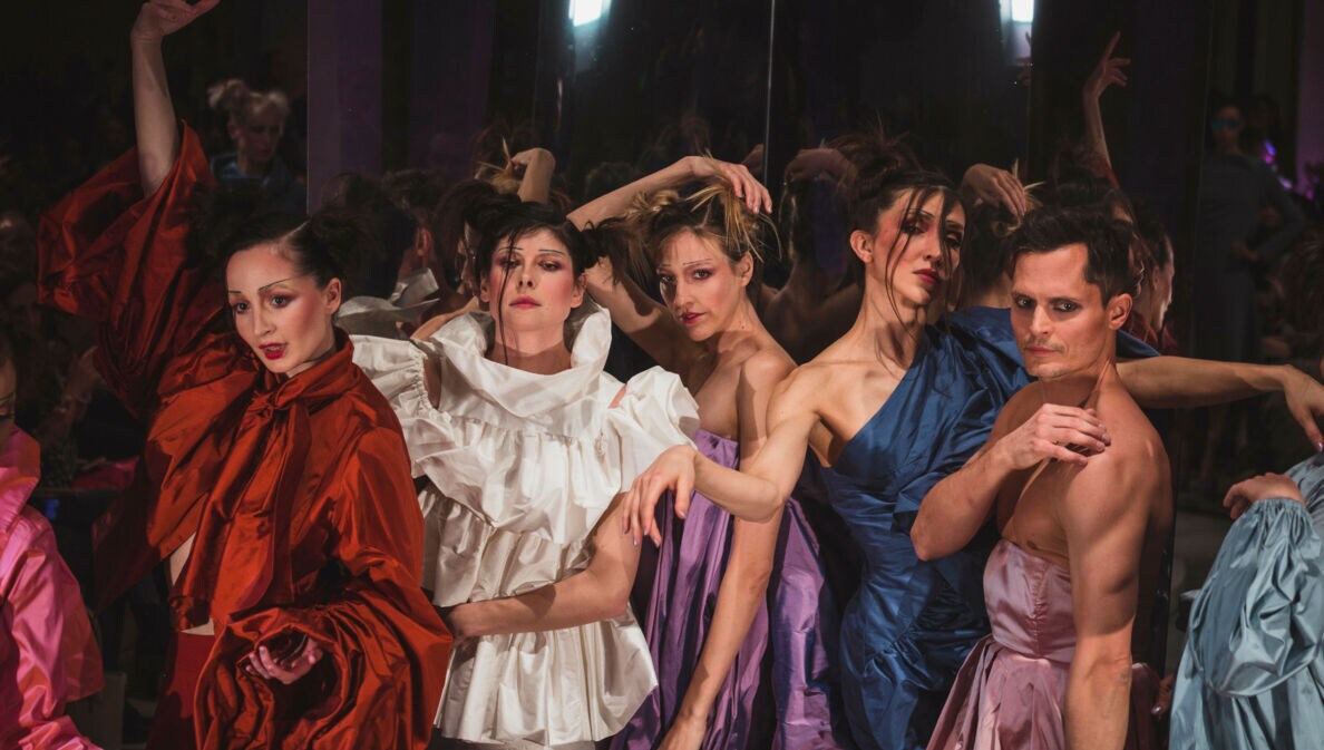 Ebenfalls zum ersten Mal dabei war die New Yorkerin Olivia Ballard, die ihr Label 2020 in der US-amerikanischen Hauptstadt gegründet hat. Ihre Schau in Berlin-Schöneweide fand in Industriekulisse statt. Die Abenddämmerung, die Schwelle vom Abend zur Nacht, war das Thema. Gezeigt wurden Abendkleider und Club Couture, eine diverse Kollektion für alle Geschlechter und Körperformen.