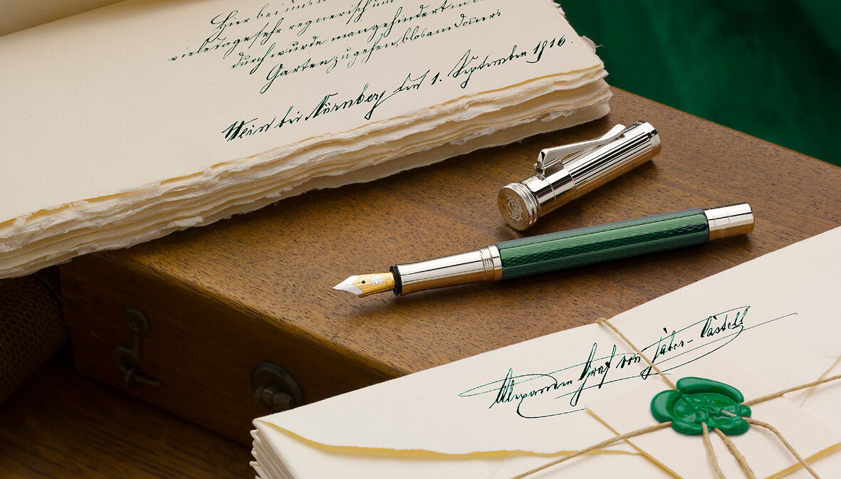 Ebenso made in Germany: die handgefertigten Füllfederhalter aus dem Haus Graf von Faber-Castell. Das fränkische Unternehmen, gegründet 1761, gelangte eigentlich durch seine hochwertigen Blei- und Buntstifte zu Weltruhm – Karl Lagerfeld designte sogar eine spezielle Edition eines Farbstiftsets.