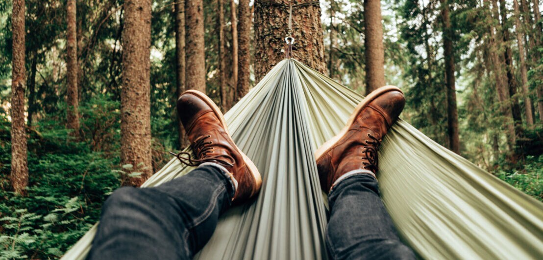 Mann entspannt in einer Hängematte im Wald