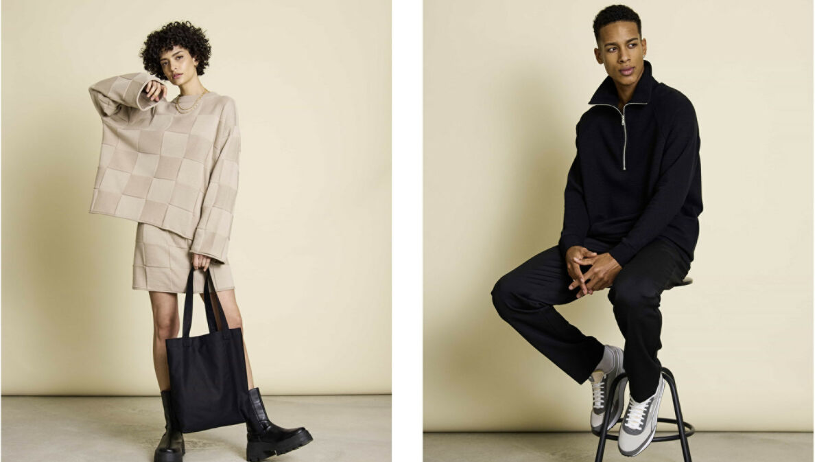 Collage aus zwei Bildern, auf denen ein weibliches und ein männliches Model Mode präsentieren